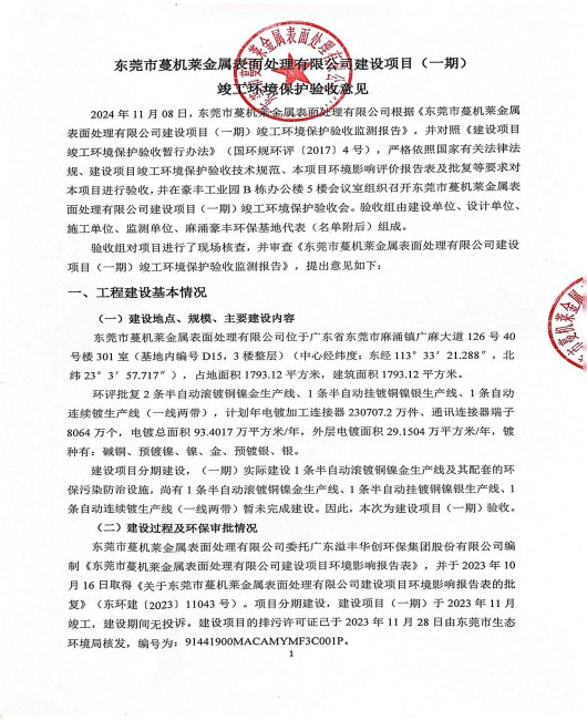 東莞市蔓機萊金屬表面處理有限公司建設(一期