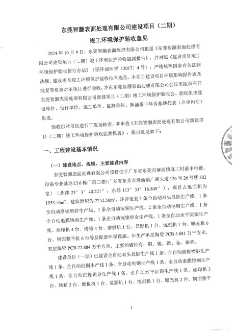 東莞智灝表面處理有限公司建設(二期)驗收意