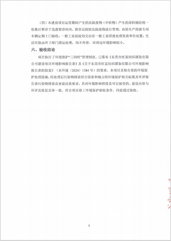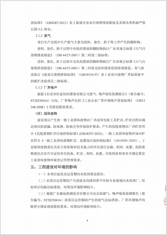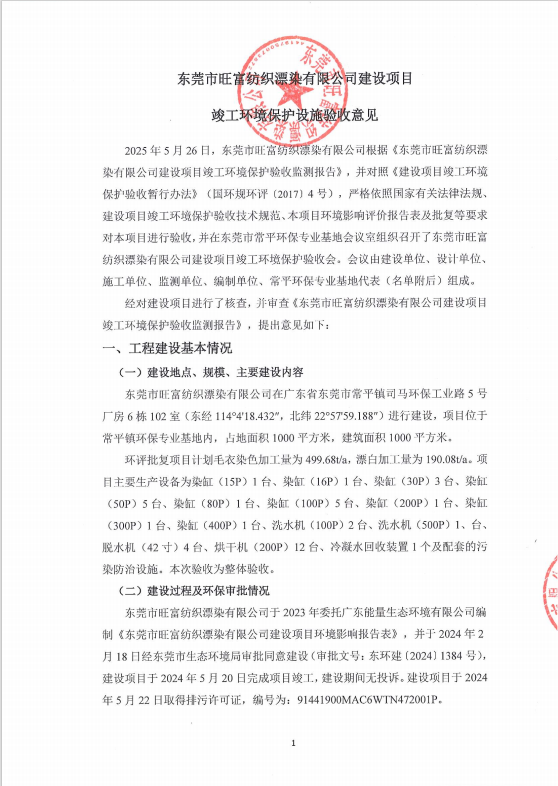 東莞市旺富紡織漂染有限公司竣工環(huán)境驗(yàn)收