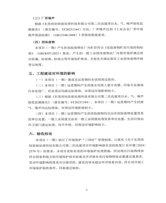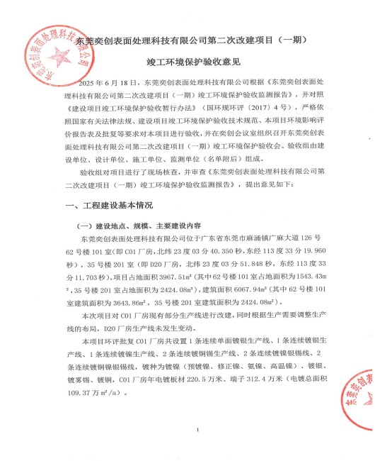 東莞奕創表面處理科技有限公司第二次改建驗收