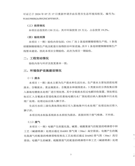 東莞市鑫和成金屬表面處理有限公司建設一期驗