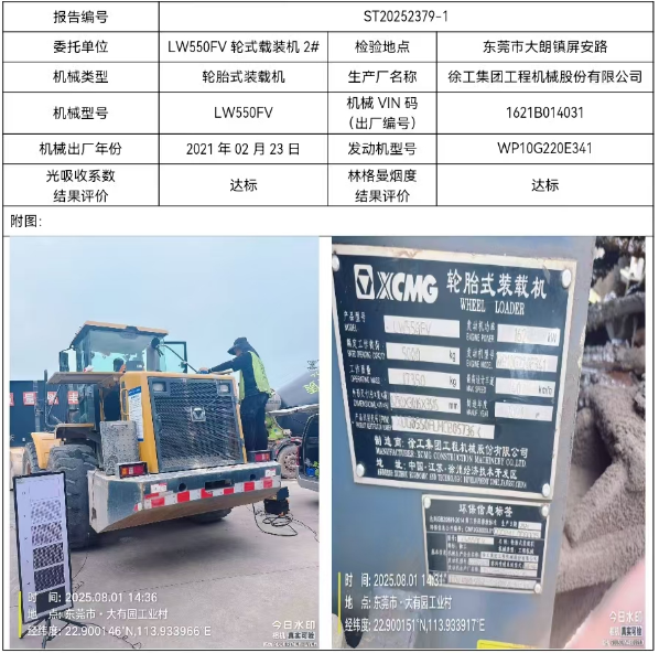 中鐵胎式裝載機2#非道路機動車尾氣檢測