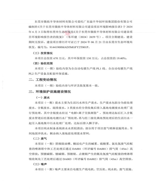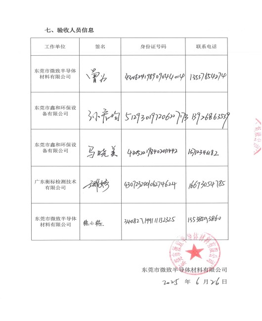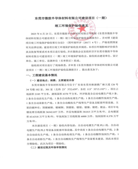 東莞市微致半導(dǎo)體材料有限公司(一期)驗(yàn)收意