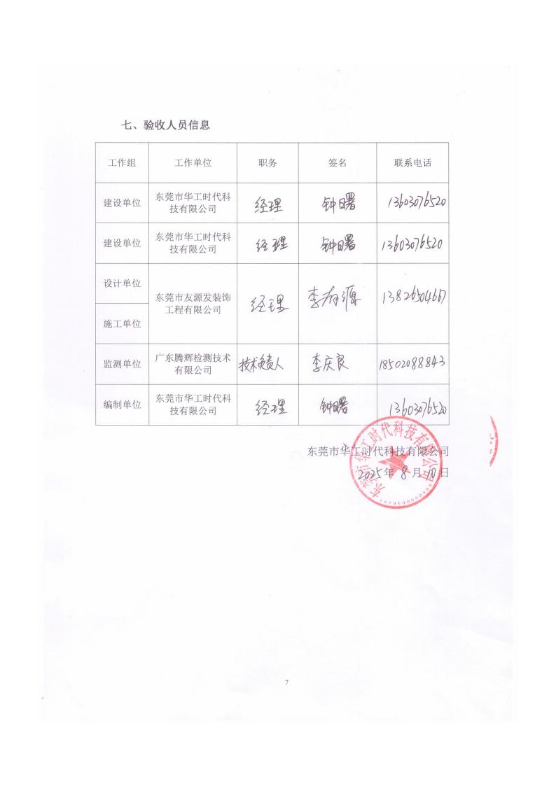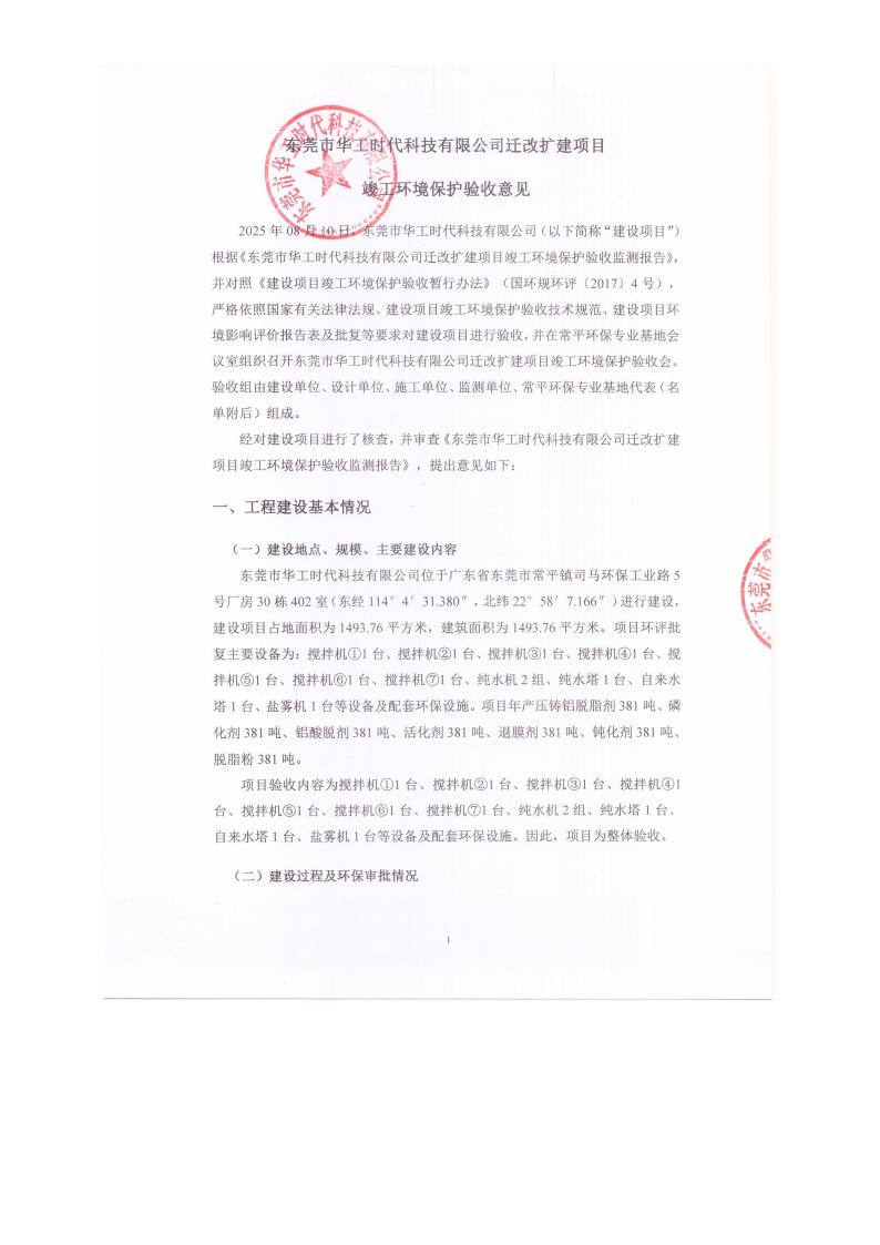 東莞市華工時代科技有限公司驗收意見