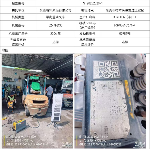 平衡重式叉車(內燃)非道路機動車尾氣檢測