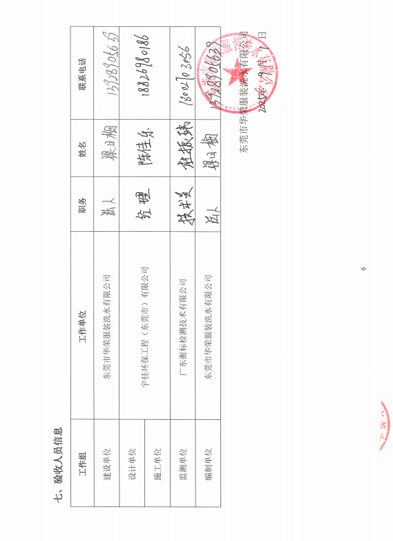 東莞市華榮服裝洗水有限公司建設項目驗收意見