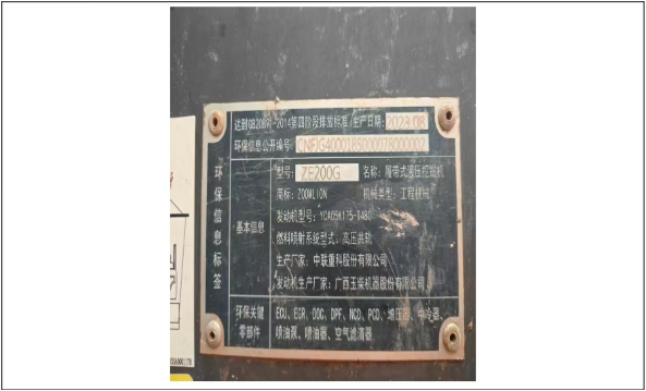ZE200G液壓挖掘機非道路機動車尾氣檢測