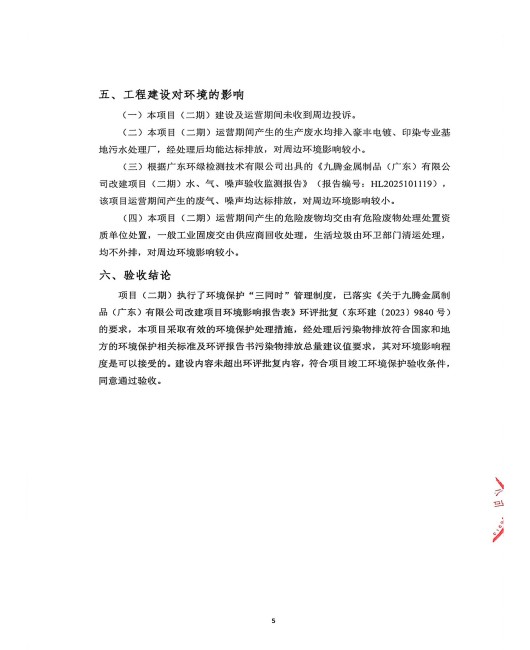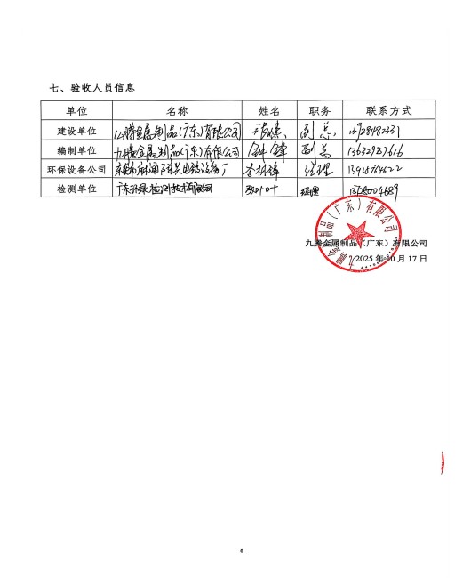 九騰金屬制品(廣東)有限公司改建二期驗收意